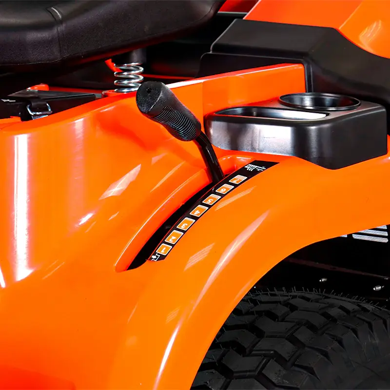 Вместительный 245-литровый травосборник облегчает сбор скошенной травы. Механизм мульчирования измельчает отходы для выброса в качестве удобрения. Движение производится при помощи крупных проходимых колес с протектором. Агрегат обеспечивает быстрый уход за территорией максимальной площадью 5000 м2. Способен работать в переднем и заднем направлении. Оператор размещается в удобном кресле с рулевым колесом и панелью управления.