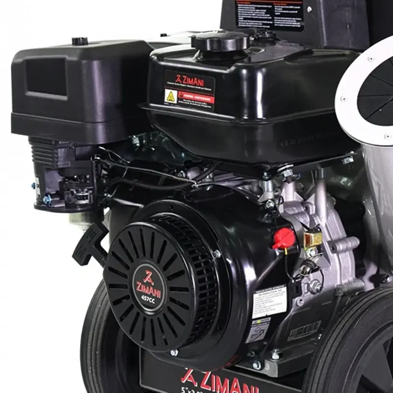 Бензиновый измельчитель веток ZimAni CS10D предназначен для перемалывания садовых растительных отходов. Четырехтактный двигатель мощностью 17 л.с. и особый ножевой механизм обеспечивают высокую производительность. В конструкции предусмотрены два загрузочных приемника. В один подаются стволы и ветки деревьев диаметром до 125 мм, в другой — листья, ботва, тонкие прутья толщиной до 15 мм.