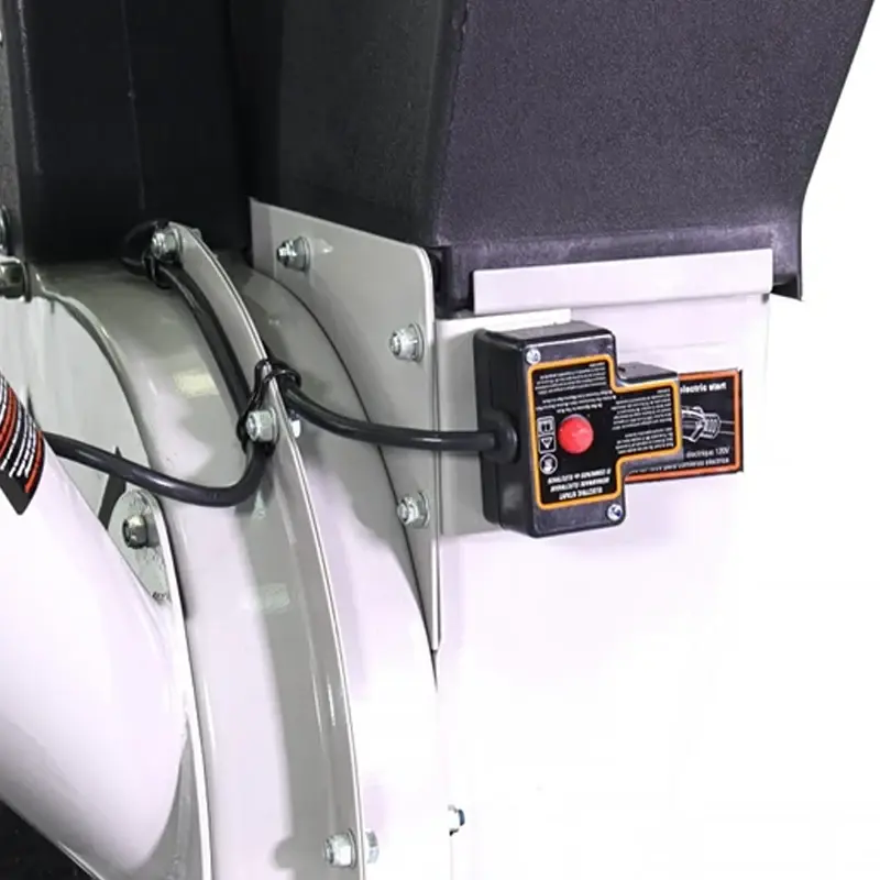 - Дефлектор выброса. Для обеспечения безопасности оператора измельчитель имеет дефлектор, который предотвращает выбрасывание из разгрузочной трубы продуктов измельчения с высокой скоростью