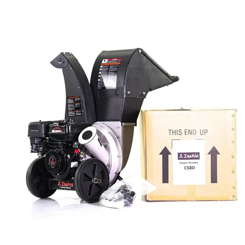 Бензиновый измельчитель веток ZimAni CS8D применяется для переработки обрезанных ветвей и сучьев деревьев и кустарников максимальной толщиной до 100 мм. Эта модель оснащена двумя большими колесами для простого перемещения по участку.