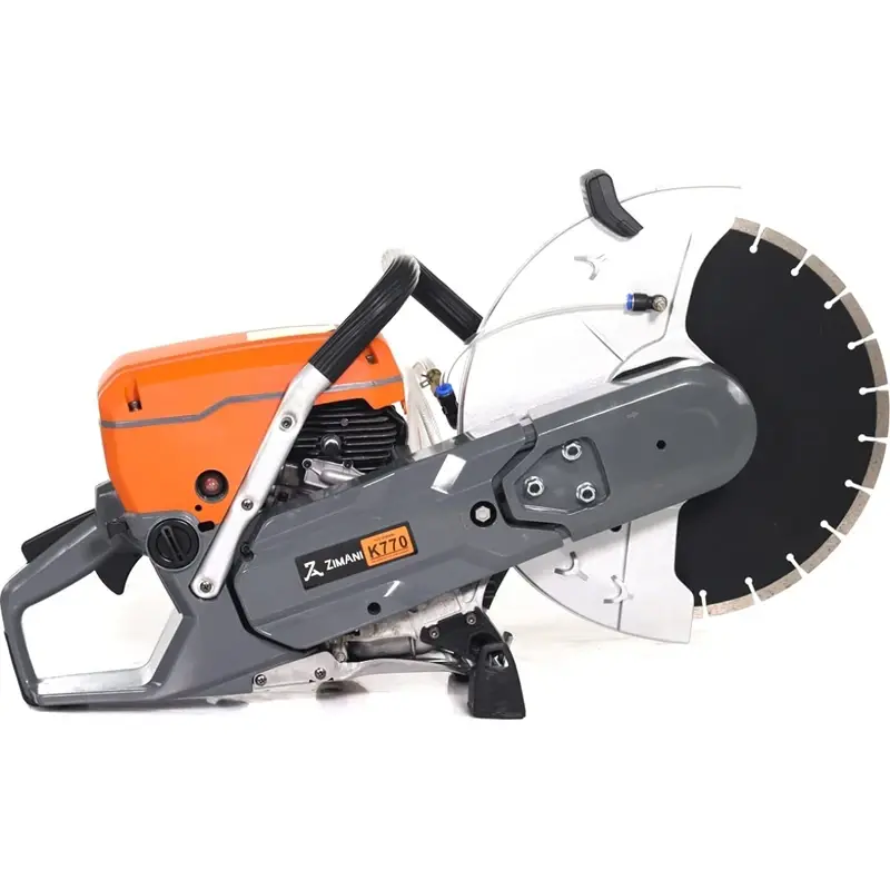 Другие важные компоненты бензореза - это пылезащищенный стартер, который повышает надежность и срок службы продукта, декомпрессионный клапан для облегчения запуска бензореза. ZimAni K770 - идеальный инструмент для резки бетона и камня при реконструкции, обновлении и строительстве зданий. Он также идеально подходит для создания небольших отверстий и подгонки оконных и дверных проемов и резки труб, асфальта и металлов.