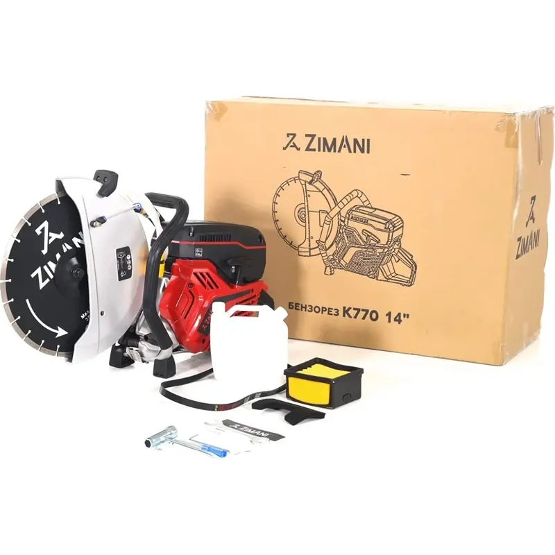 ZimAni K770 14" Red Line - идеальный инструмент для резки бетона и камня при реконструкции, обновлении и строительстве зданий. Он также идеально подходит для создания небольших отверстий и подгонки оконных и дверных проемов и резки труб, асфальта и металлов.