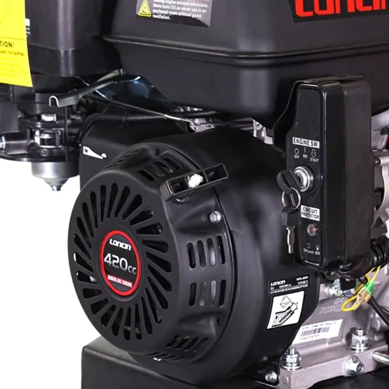 - Двигатель Loncin G420F(D) с электростартером. Мощность: 15 л.с.. 4-тактный, двухцилиндровый, бензиновый