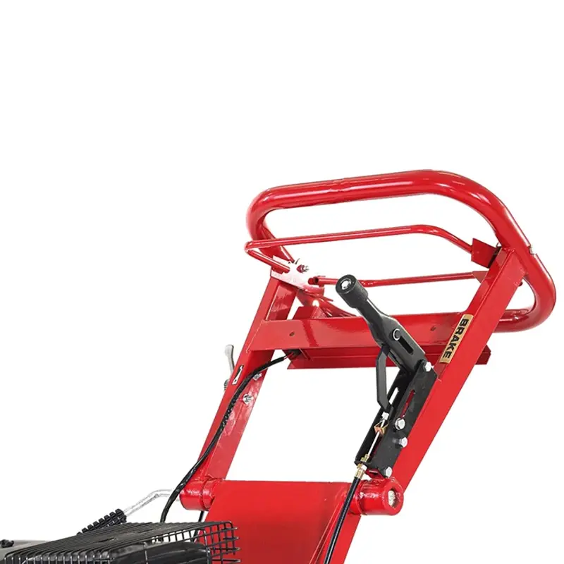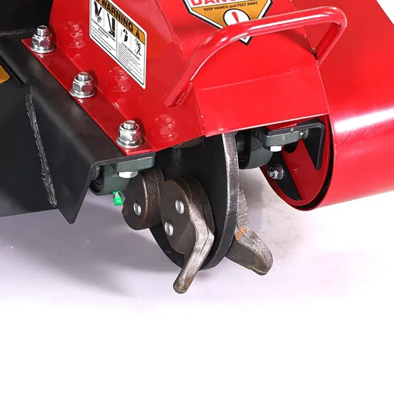 Рукоятку можно опускать и поднимать, регулируя по высоте для удобства работы с измельчителем пней ZimAni SG350. Большой металлический кожух защищает от вылетающих из-под диска опилок.