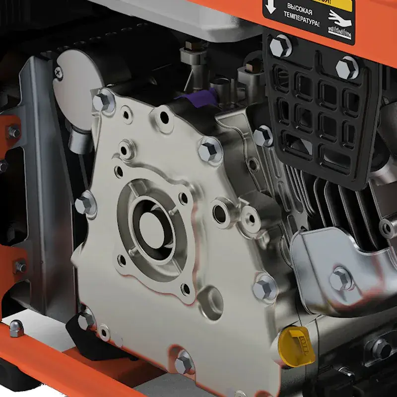 Бензиновый генератор оснащен фирменным 4-хтактным двигателем Zongshen GB225 с воздушным охлаждением, которое предотвращает перегрев устройства. Электростартер облегчает запуск мотора в любую погоду. Открытая конструкция на раме удобна для технического обслуживания и перевозки. Для защиты от влаги и пыли розетки оборудованы специальными крышками.