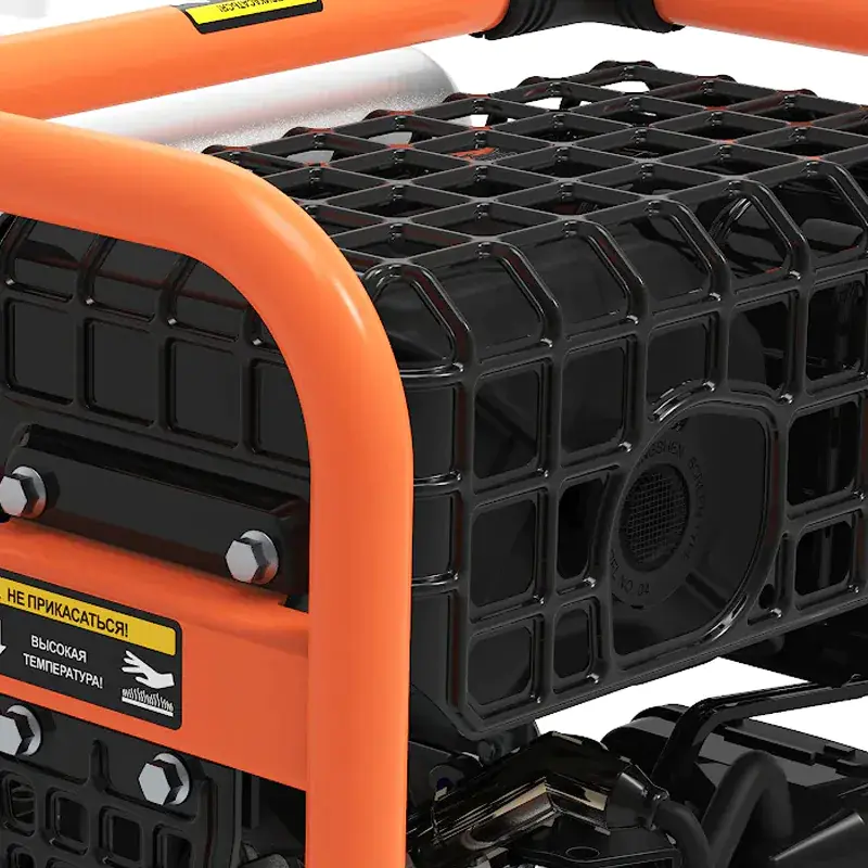Бензиновый генератор оснащен фирменным 4-хтактным двигателем Zongshen GB225 мощностью 3,8 кВт. Для запуска используется ручной стартер. Прочная металлическая рама упрощает погрузку и перевозку устройства. Открытая сборка обеспечивает быстрый доступ для технического обслуживания узлов агрегата. Розетки защищены от попадания влаги и пыли специальными крышками.