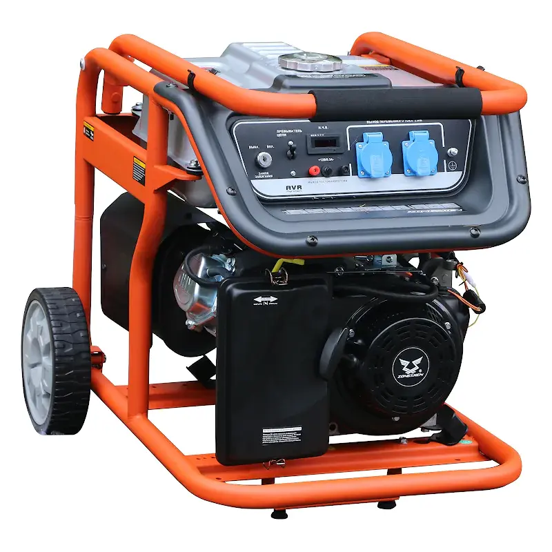 Четырехтактный двигатель заводится одним поворотом ключа зажигания при помощи электрического стартера. На случай разрядки аккумуляторной батареи предусмотрен ручной стартер. Одной заправки бензобака достаточно для автономной работы бензинового генератора Zongshen на протяжении 8 часов. Индикатор предупреждает о низком уровне топлива.