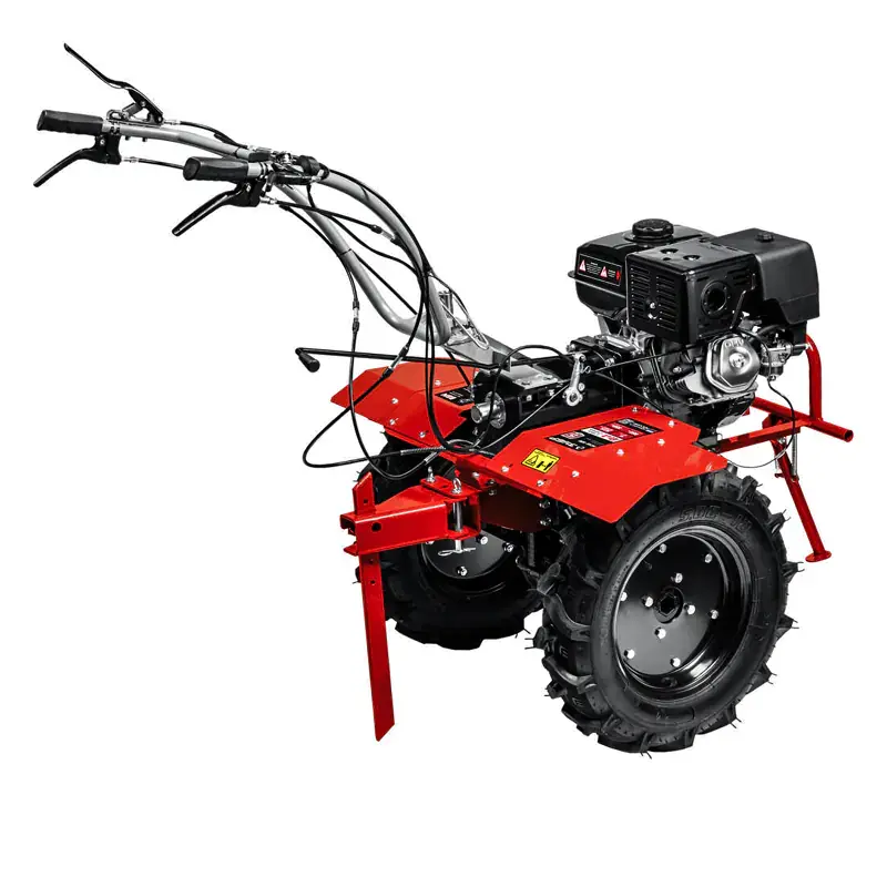 Бензиновый мотоблок поддерживает три передачи вперед: пониженную, основную и повышенную для комфортного выполнения различных задач. Задний ход обеспечивает маневренность машины. Глубину вспашки легко регулировать путем изменения высоты сошника. Продолжительная работа без дозаправки гарантирована благодаря вместительному топливному баку. Рычаги разблокировки правого и левого колеса позволяют разворачивать мотоблок в нужную сторону без излишних усилий.
