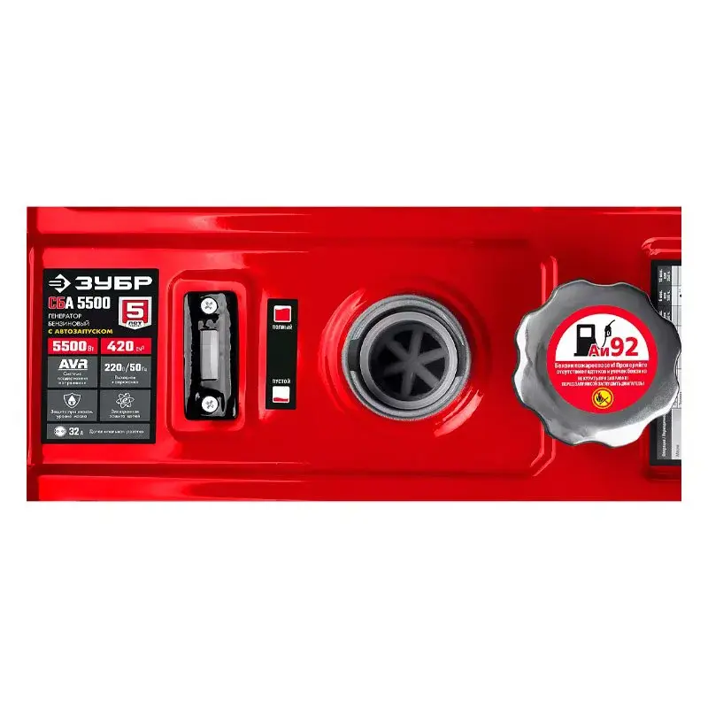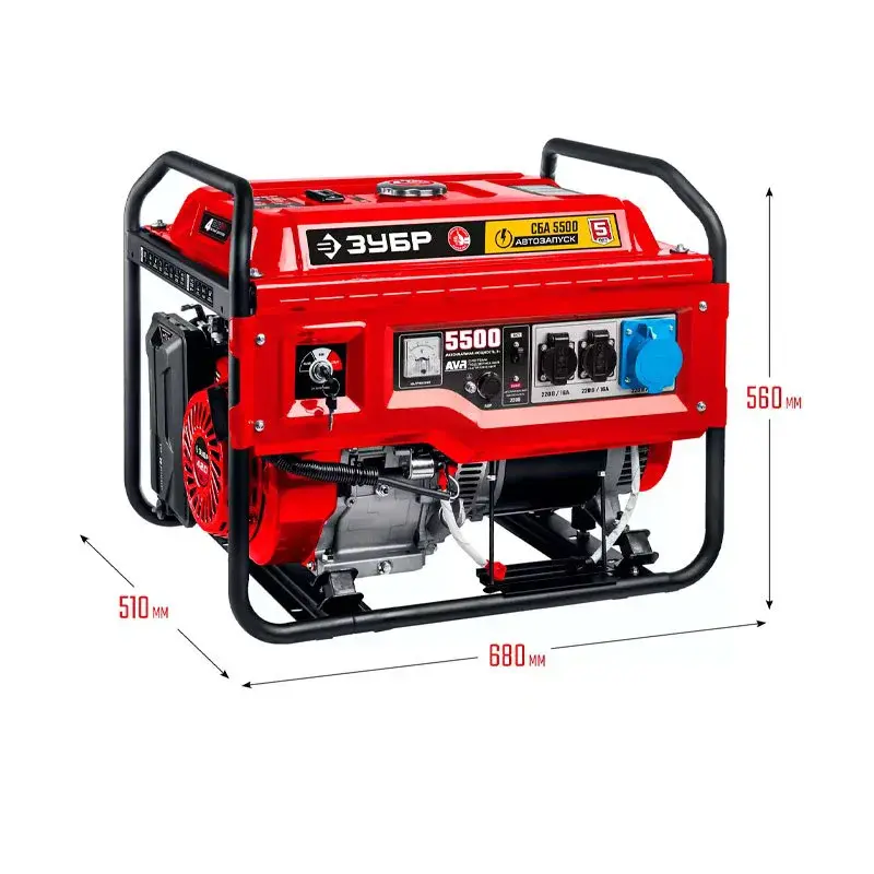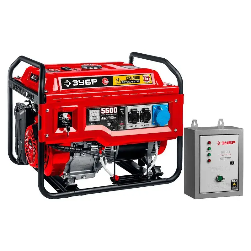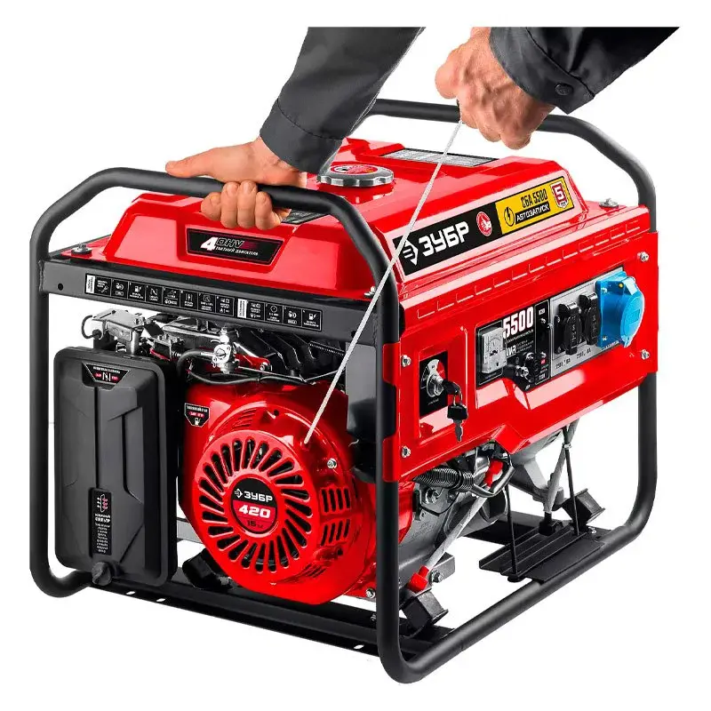Бензиновый электрогенератор ЗУБР СБА-5500, предназначен для обеспечения электрической энергией потребителей в отсутствии электрической сети, а также для использования в качестве резервного или аварийного источника электрической энергии. Мощный генератор, который пригодится не только в загородном доме, но и в мастерской, и на строительной площадке, и вообще везде, где нет стационарного электричества, но нужно иметь работающий приборы и инструмент.
