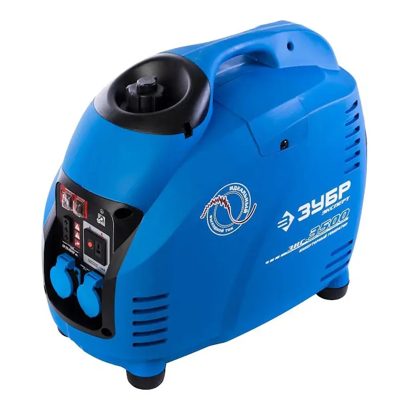 Инверторный генератор ЗУБР ЗИГ-3500 мощностью 3500 Вт подходит для использования как на стройке, так и в бытовых условиях. Бак для топлива обладает объемом 5,7 л, что позволяет оборудованию непрерывно работать в течение 4 часов.